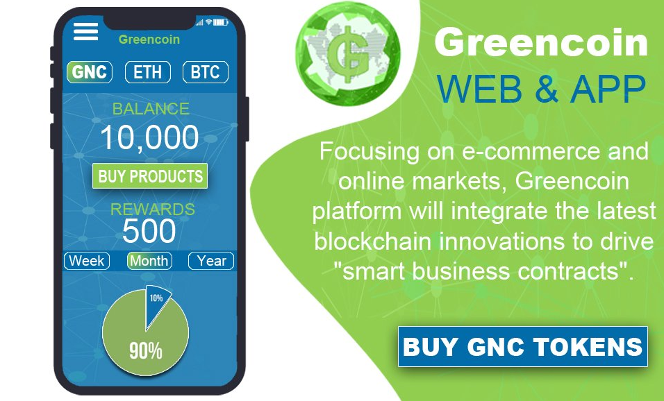Greencoin - это платформа, нацеленная на объединение производителей экологически чистых систем и компаний-монтажников или сертифицированных лиц напрямую с покупателями по всему миру, которая поможет бороться с основными проблемами, с которыми сталкиваются люди сегодня, платформа обмена знаниями по требованию с децентрализованным рынком, предназначенным для малых и крупных компаний , Платформа упрощает генерацию потенциальных клиентов и взаимодействия B2C посредством администрирования экосистемы предложения / запроса, децентрализованной поддержки Escrow на основе Blockchain и реализации правил и стандартов, установленных для ведения бизнеса посредством умных контрактов.